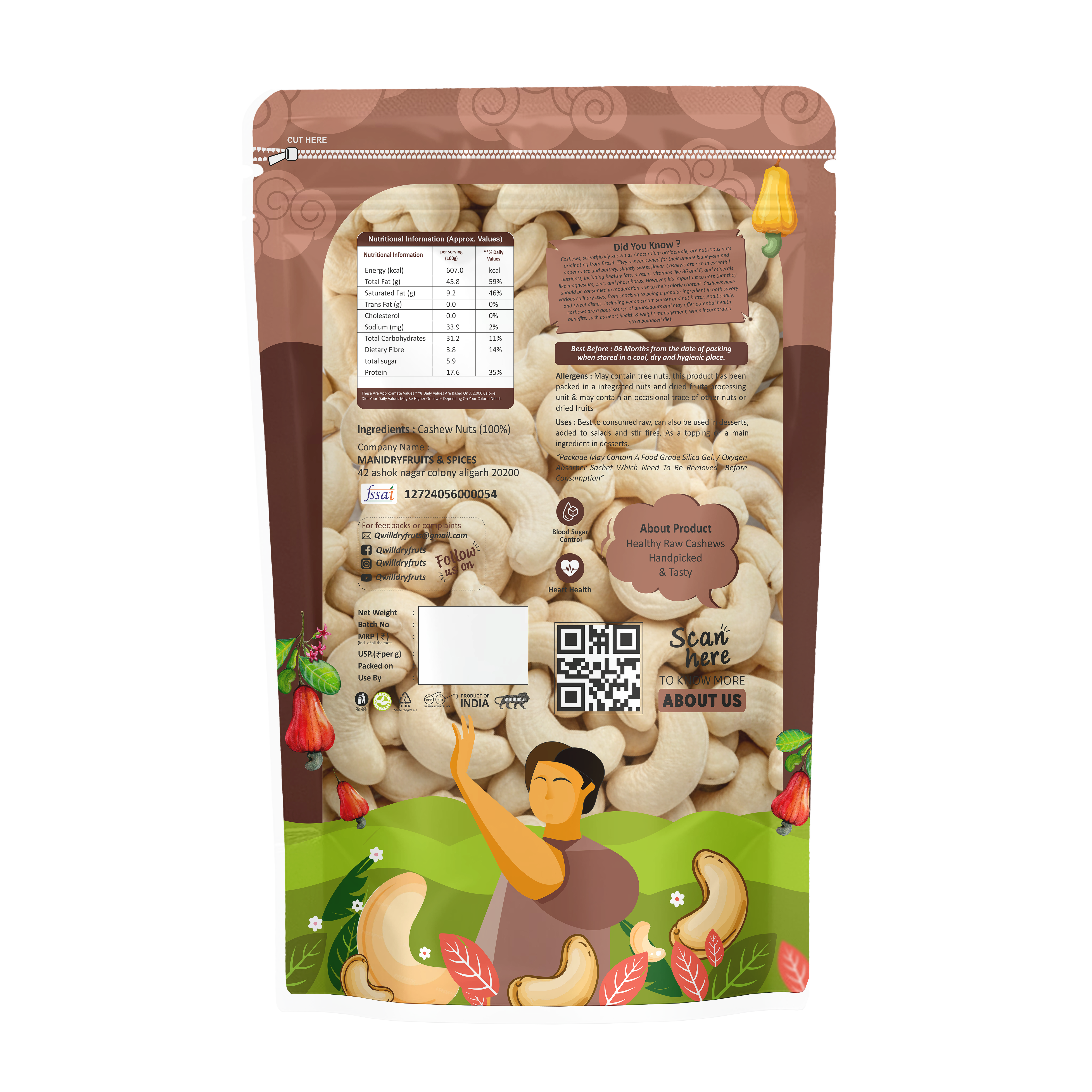 Prepared from 100% pure, high-quality cashews, this natural superfood supports heart health, energy levels, and overall vitality. Enjoy them raw, roasted, or added to snacks, curries, desserts, and baked goods—every serving delivers clean, nourishing goodness.