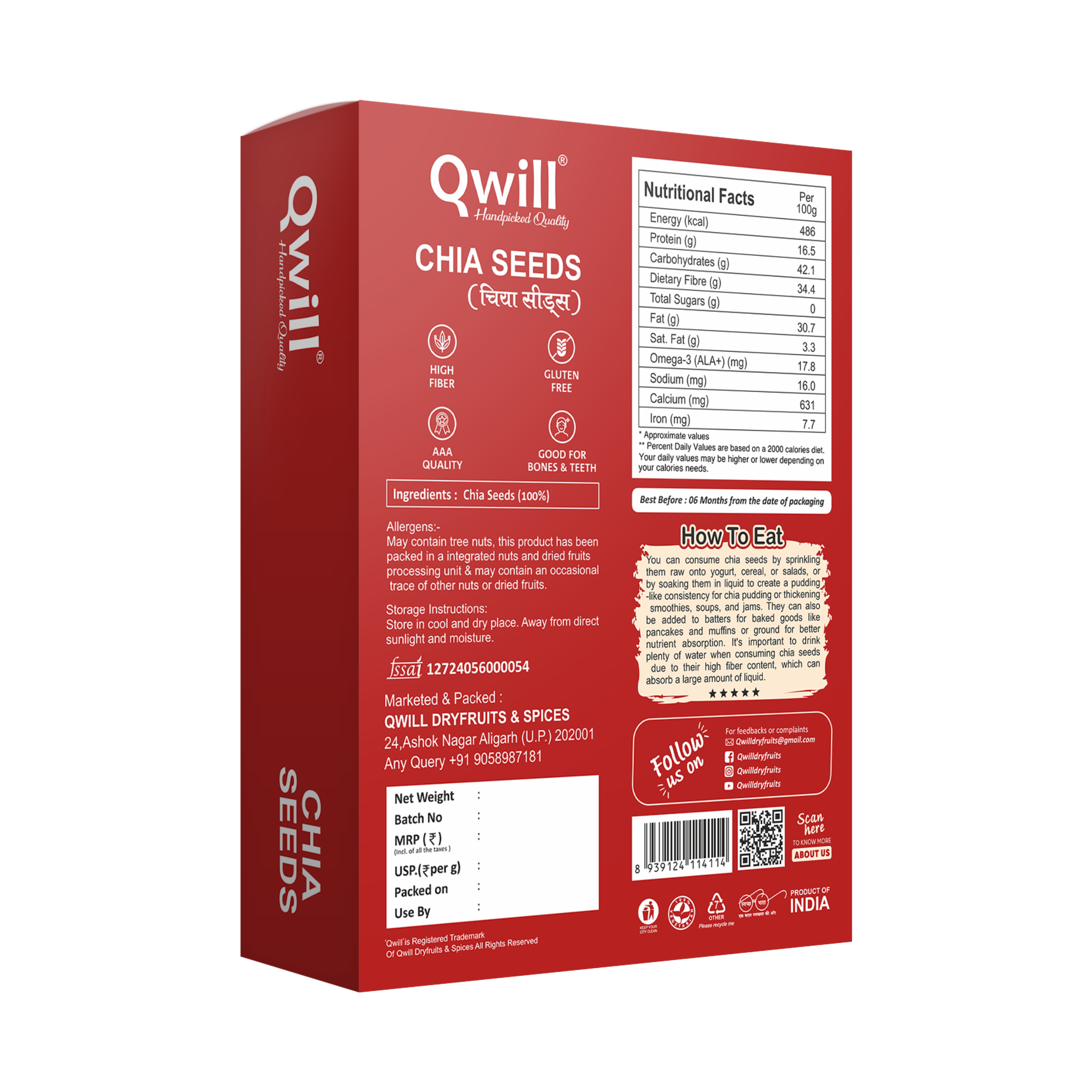 Discover the nutritional strength of Qwill Premium Chia Seeds. Carefully sourced and naturally processed, these tiny superfoods are packed with essential nutrients that support daily energy, digestion, and overall wellness. Known for their high fiber and omega-3 content, chia seeds are a smart addition to a balanced lifestyle.
