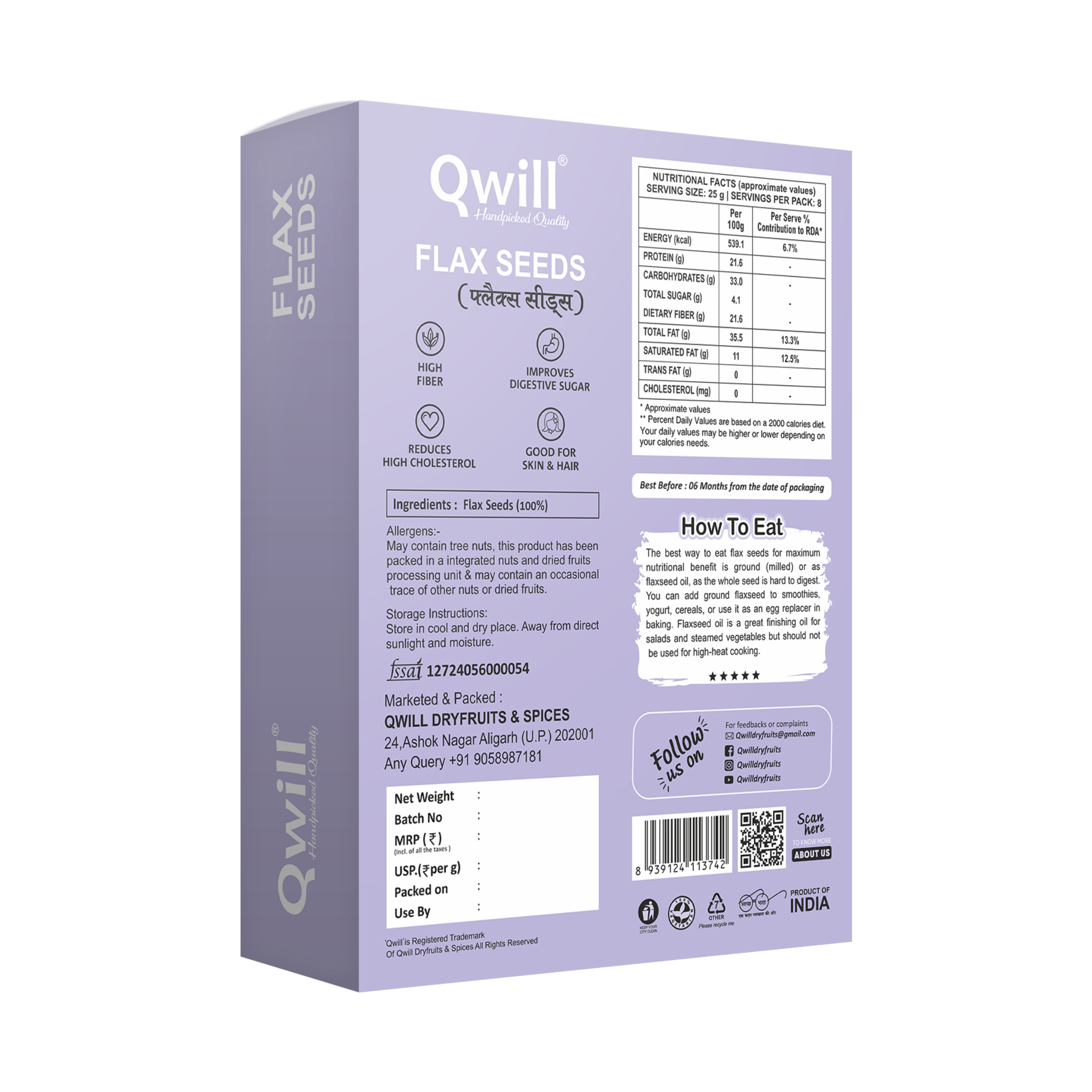 Experience the natural power of nutrition with Qwill Premium Flax Seeds. Carefully sourced and naturally processed, these tiny superseeds are packed with essential nutrients that support overall health, digestion, and heart wellness. Known for their rich omega-3 content and dietary fiber, flax seeds are a simple yet powerful addition to your daily diet.